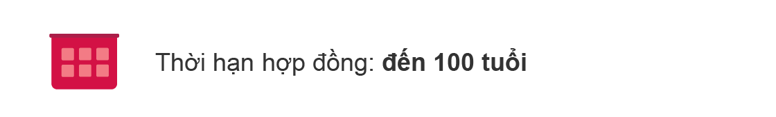 Thời hạn hợp đồng: Được tính từ Ngày hiệu lực hợp đồng cho đến ngày kỷ niệm hợp đồng ngay sau khi Người được bảo hiểm đủ 100 tuổi